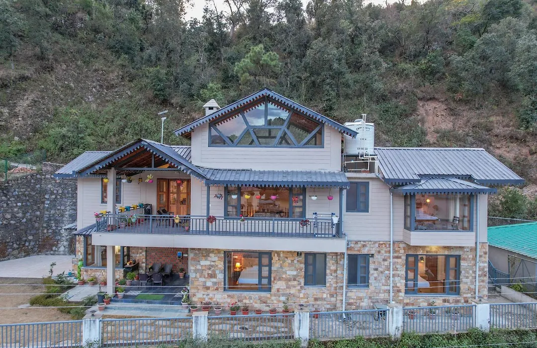 The 47.8 - hectare Bhimtal Lake is about a 10-minute ride away and Pantnagar airport is 60 km from this villa.